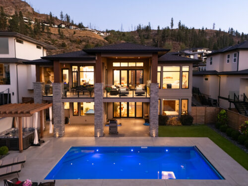 Additional features such as Bolivian walnut doors, upgraded security, Culligan water softener, reverse-osmosis system, and a garage equipped with epoxy floors, workshop, EV charger, and mezzanine further elevated the property. The professionally landscaped grounds—with dining patio and water feature—offered a low-maintenance lifestyle, allowing full enjoyment of everything the Okanagan has to offer.