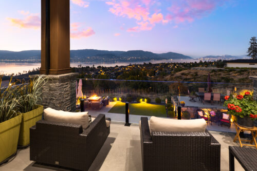 This home delivered some of the most breathtaking panoramic vistas in the Okanagan, stretching across the lake toward Vernon, over vineyards, the bridge, and the city lights beyond. Backing onto natural green space, the setting offered an added layer of privacy while enhancing the already impressive outlook.