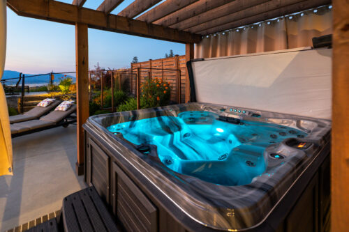 Additional features such as Bolivian walnut doors, upgraded security, Culligan water softener, reverse-osmosis system, and a garage equipped with epoxy floors, workshop, EV charger, and mezzanine further elevated the property. The professionally landscaped grounds—with dining patio and water feature—offered a low-maintenance lifestyle, allowing full enjoyment of everything the Okanagan has to offer.