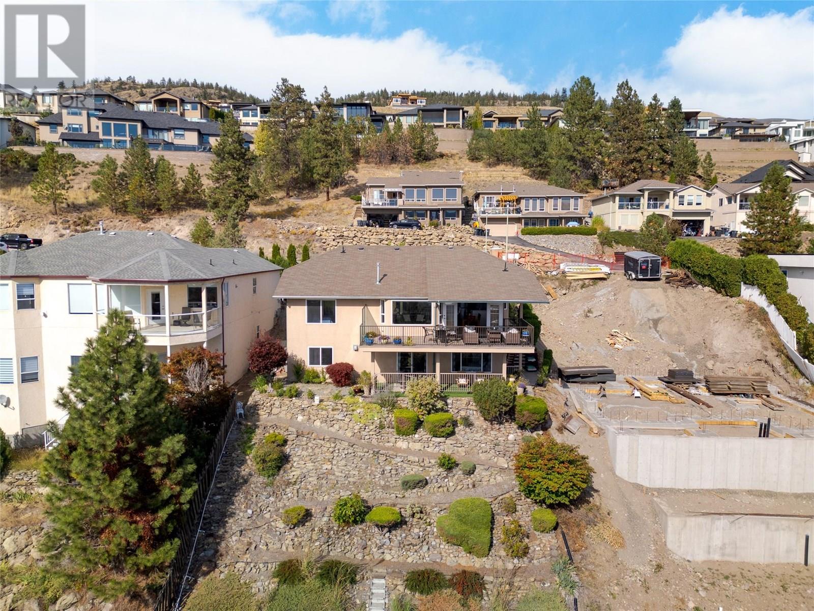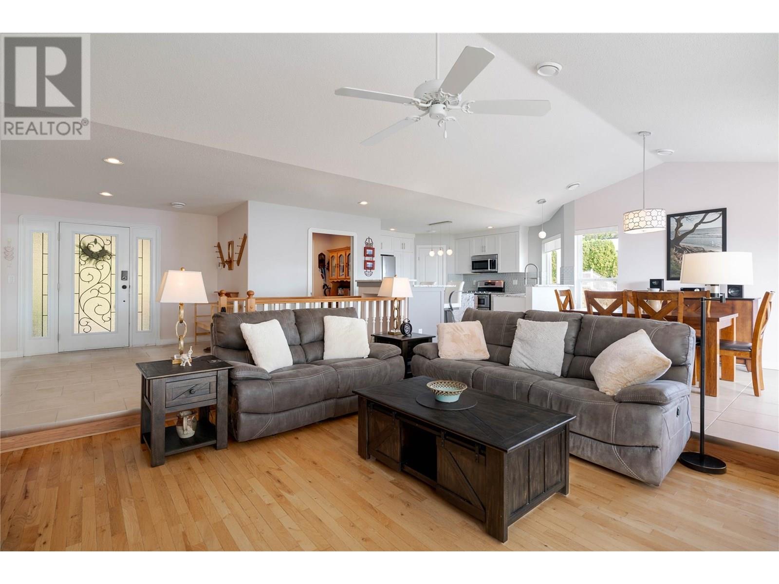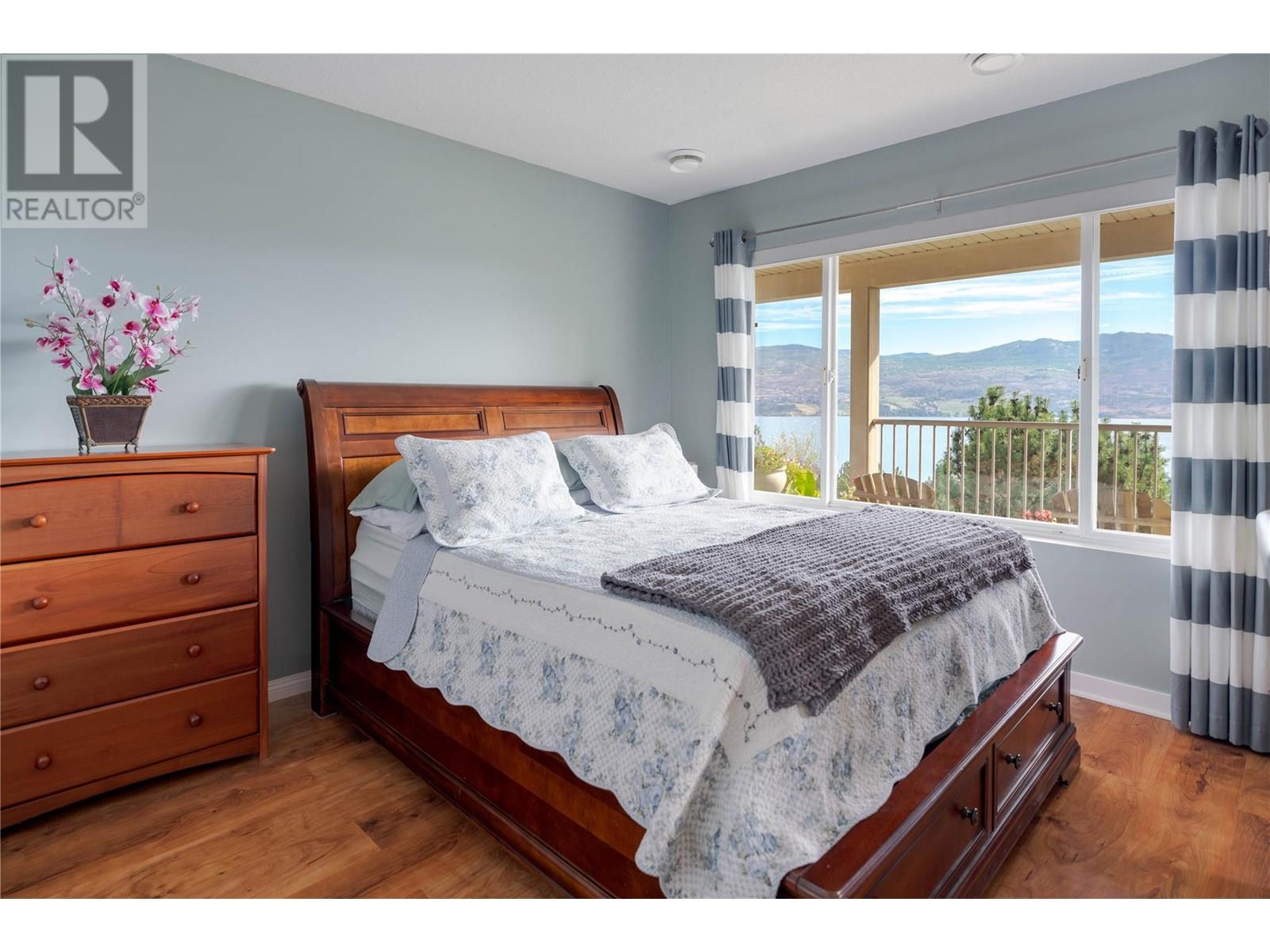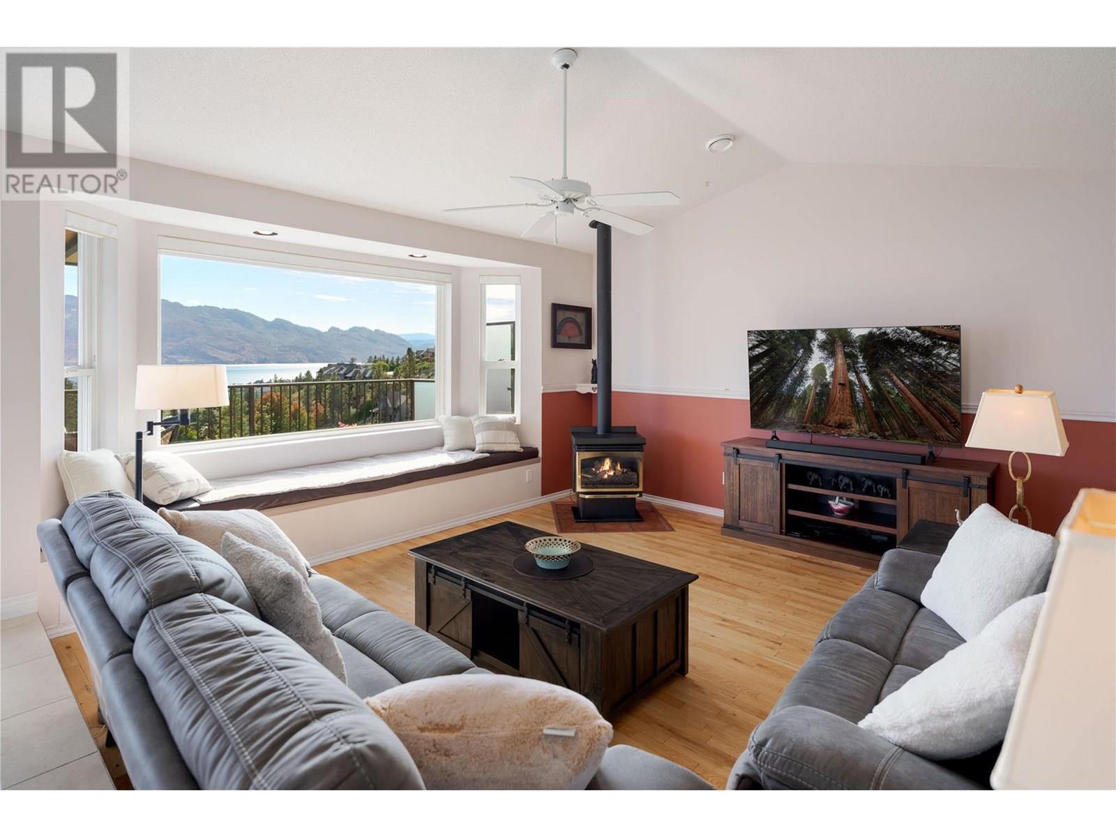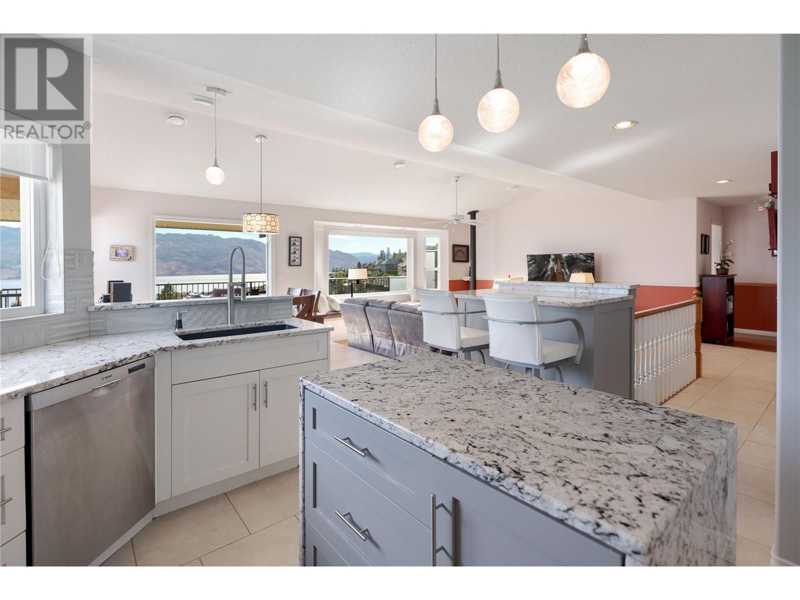 Experience sweeping lake views, a functional layout, and quality updates in this stunning walk-out rancher. You’ll be welcomed by an abundance of natural light, expansive windows framing the view, and soaring vaulted ceilings. The bright kitchen features white shaker cabinetry, stone countertops, an island with seating, and quality appliances—ideal for both daily living and entertaining. The open-concept dining and living room centres around a cozy gas fireplace and uninterrupted views. Step out onto the upper deck, recently updated with new decking, railings, and stairs to the lower level. The main floor primary retreat enjoys lake views, while a second bedroom, full bathroom, and mud room complete the level. Downstairs offers two more bedrooms, a spacious rec/family room with fireplace, a separate entrance, laundry, and ample storage—perfect for hobbies, guests, or working from home. The second lakeview deck and low-maintenance landscaping provide peaceful outdoor living. Located on a quiet cul-de-sac, just minutes to wineries, dining, and the lake. (id:43014)