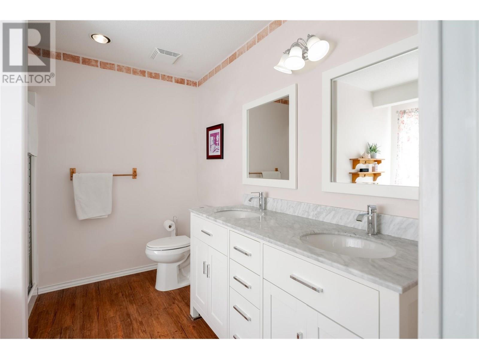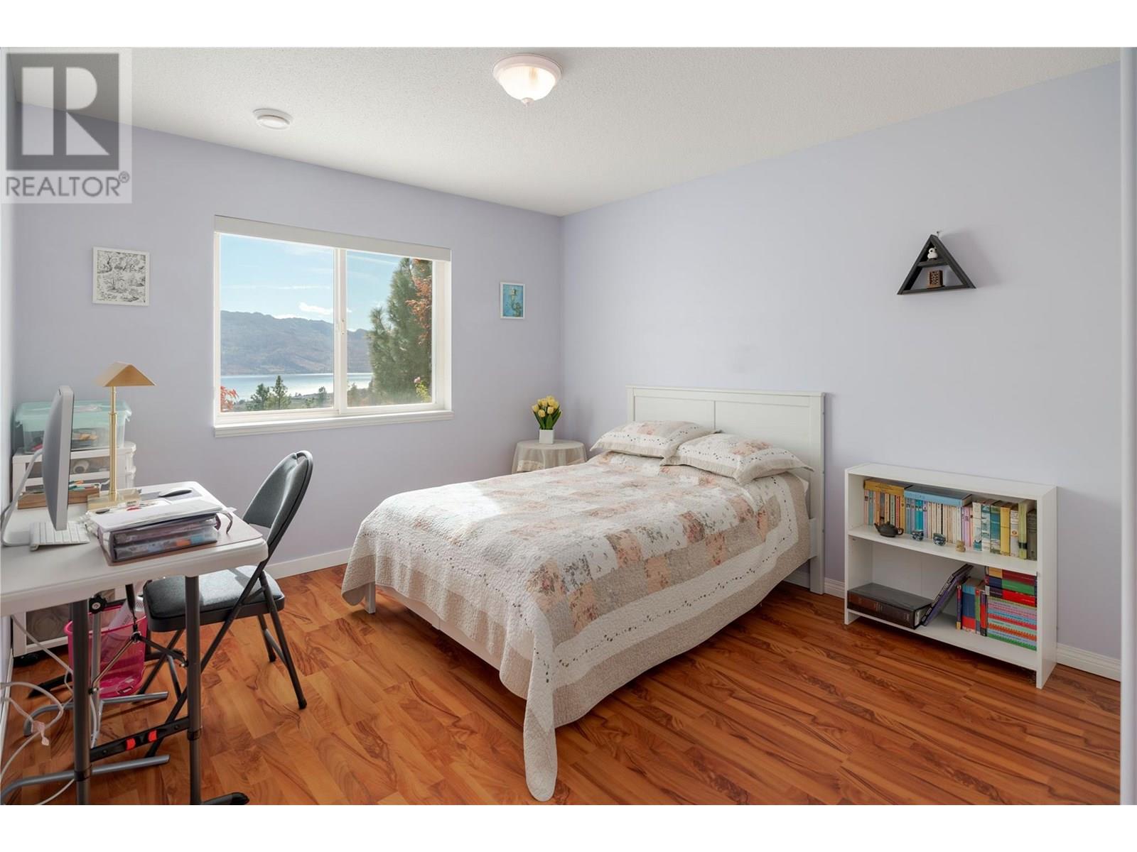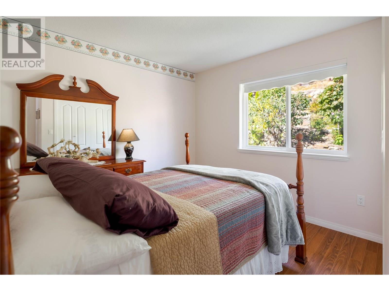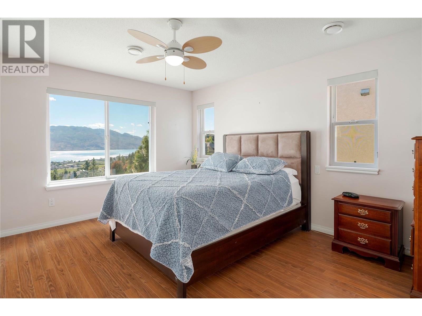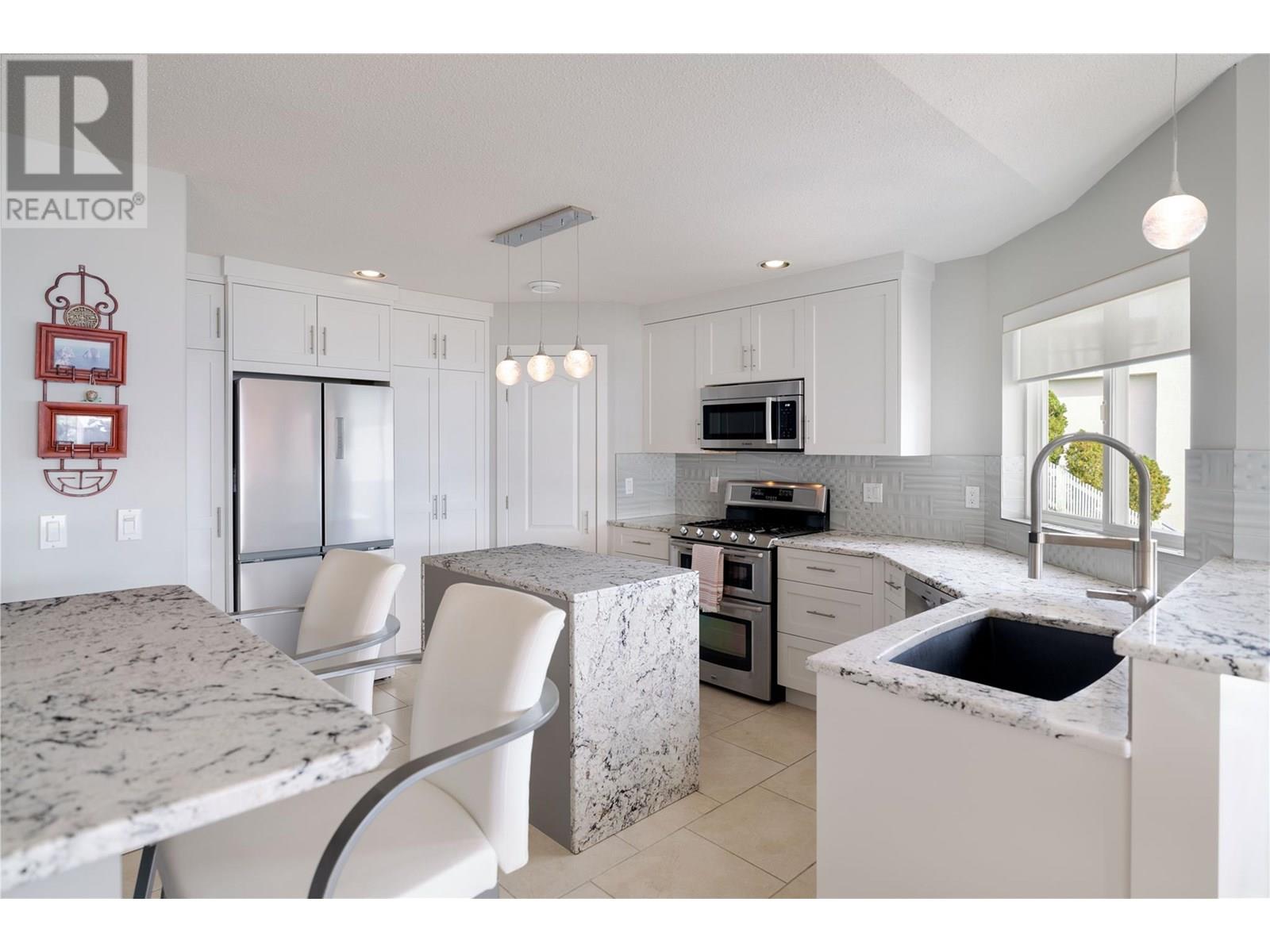 Experience sweeping lake views, a functional layout, and quality updates in this stunning walk-out rancher. You’ll be welcomed by an abundance of natural light, expansive windows framing the view, and soaring vaulted ceilings. The bright kitchen features white shaker cabinetry, stone countertops, an island with seating, and quality appliances—ideal for both daily living and entertaining. The open-concept dining and living room centres around a cozy gas fireplace and uninterrupted views. Step out onto the upper deck, recently updated with new decking, railings, and stairs to the lower level. The main floor primary retreat enjoys lake views, while a second bedroom, full bathroom, and mud room complete the level. Downstairs offers two more bedrooms, a spacious rec/family room with fireplace, a separate entrance, laundry, and ample storage—perfect for hobbies, guests, or working from home. The second lakeview deck and low-maintenance landscaping provide peaceful outdoor living. Located on a quiet cul-de-sac, just minutes to wineries, dining, and the lake. (id:43014)