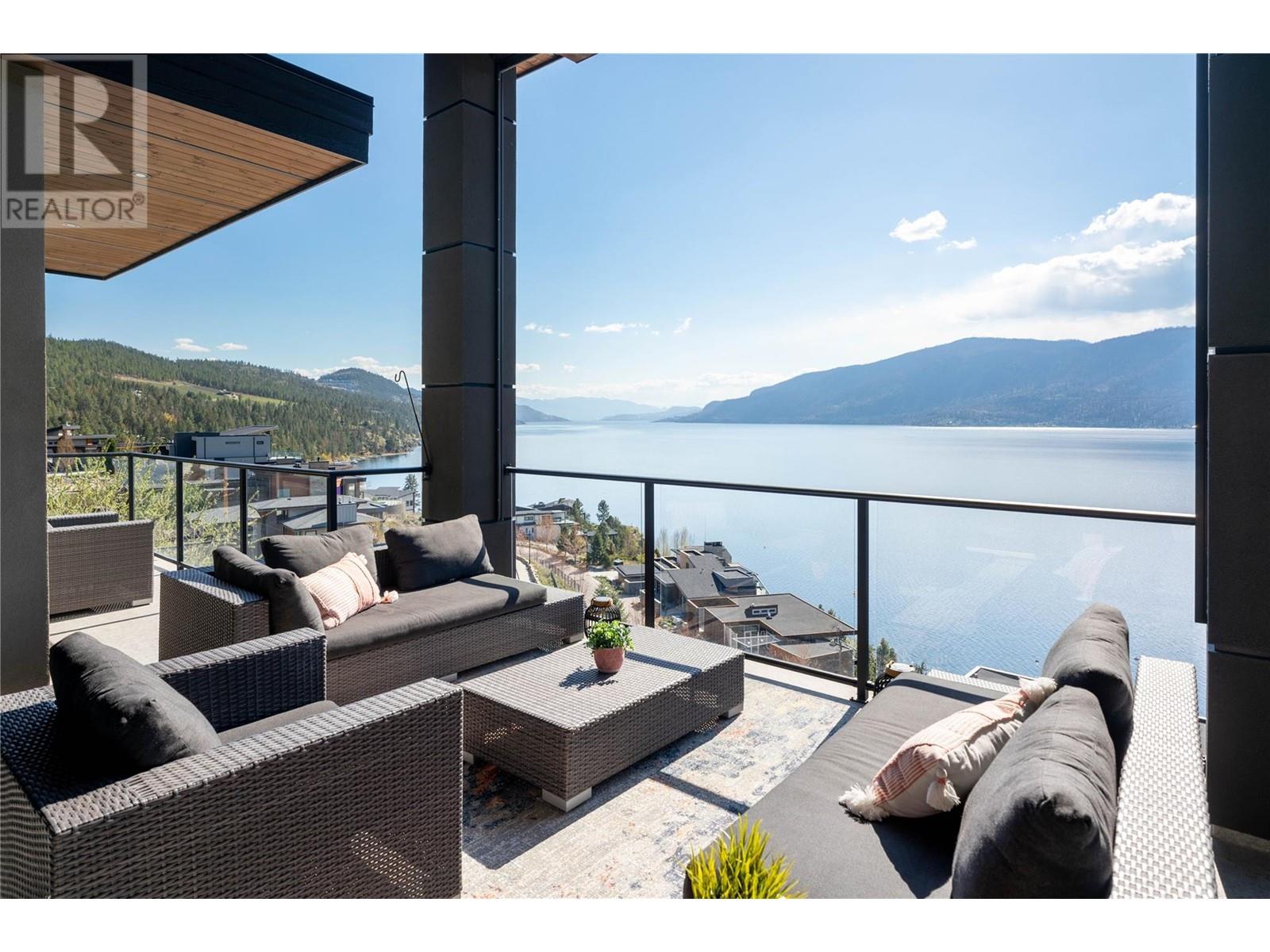 Discover luxury living in award-winning Lakestone Waterside. This stunning home boasts breathtaking lake views & exquisite details throughout. From the moment you enter the front door, you're welcomed into a space where luxury meets comfort. Marvel at the stunning 180-degree panoramic view, stretching from the bridge in the south towards Fintry in the north- like sitting atop the water itself. Enjoy transom windows, cedar beams & a cozy gas fireplace on your main level. The professionally designed kitchen features Thermador appliances, stone countertops, dedicated wine fridge & custom horizontal grain walnut cabinetry. The architectural elegance continues with striking beams leading out to a deck designed for serene moments & vibrant gatherings. The primary suite features sunset lake views, deck access, a lavish ensuite with oversized walk-in shower & soaker tub. Lower level offers a spacious rec room with wet bar area & an island with sink, 2 bedrooms, 2 full bathrooms, plus hot tub wiring on the aggregate covered deck. Nestled in the vibrant Lakestone community, this home offers more than just exquisite design; it provides a lifestyle. Enjoy easy access to walking & hiking paths, a quick stroll to the waterside, state-of-the-art amenity centers including 2 pools, 2 fitness facilities, basketball & pickle ball courts, beach access with a shared dock, all in a neighborhood renowned for its friendly atmosphere. Here, every day is a blend of comfort, style & community spirit. (id:43014)