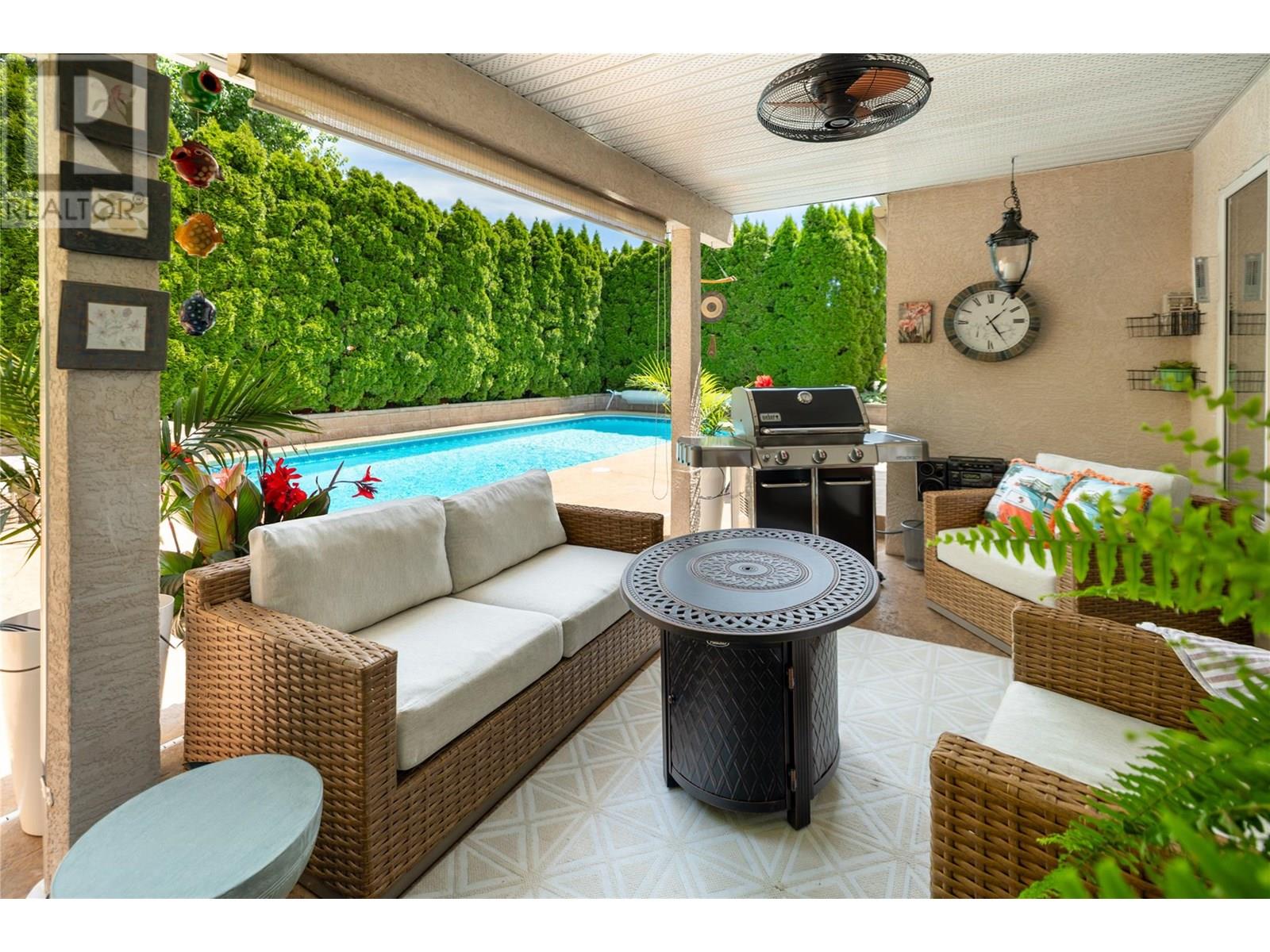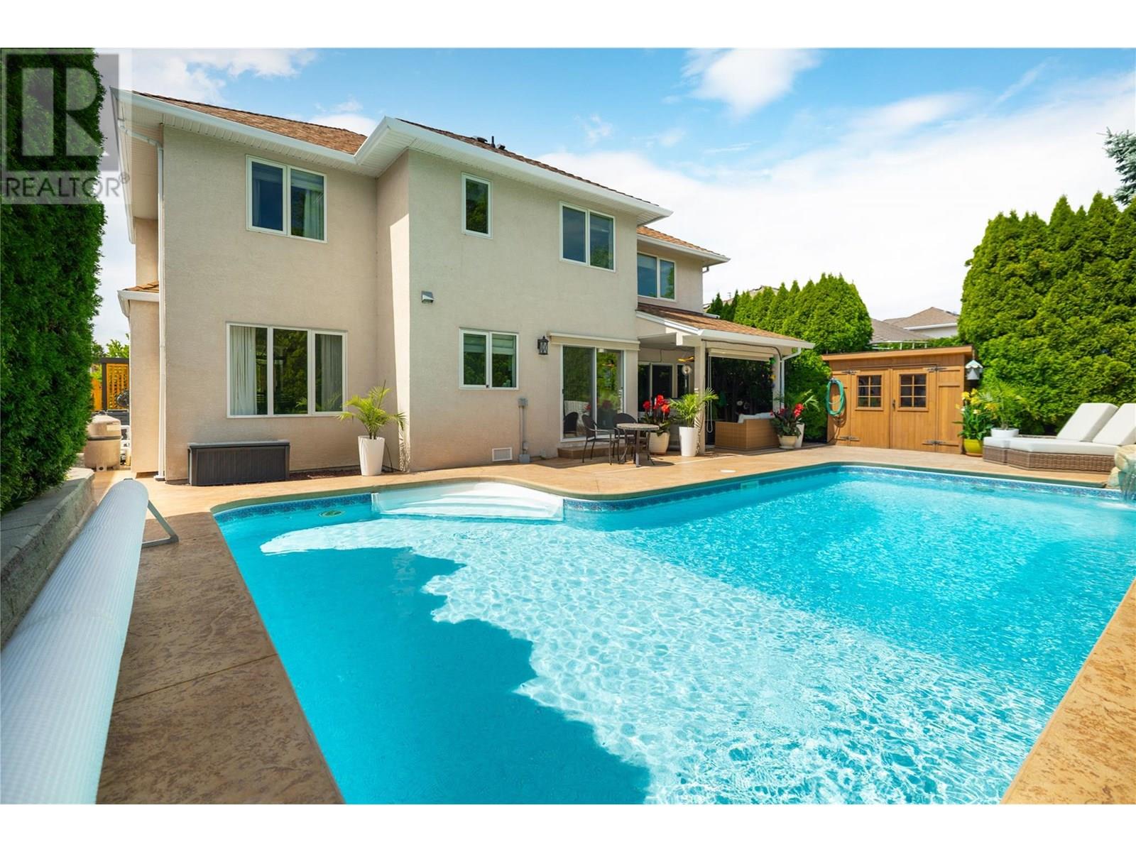 This property offers numerous updates throughout, providing an elevated living experience in one of Kelowna’s most central & desirable locations. Set in a highly sought-after neighbourhood, this home is perfectly suited for families, empty nesters, retirees & young professionals looking to enjoy everything the Okanagan lifestyle has to offer. The backyard is a true retreat—featuring a saltwater heated pool with water feature, beautifully landscaped gardens, pool shed with a light and power available, an expansive covered patio with a gas hookup & wiring for a hot tub- ideal for summer dining & evening gatherings. Inside, you’ll find rich hardwood & tile & updated light fixtures, cabinetry, countertops & appliances, including an induction range. The kitchen features an island with wine storage and wine fridge & seamlessly connects to the dining area, living room & family room. Upstairs, double doors open to an impressive primary suite complete with a luxurious ensuite & custom walk-in closet. Three additional bedrooms offer flexibility for family or guests, while a versatile bonus room easily transforms into a fifth bedroom, home office or media space. Recent updates include a new furnace, air conditioner, hot water heater, pool heater, pump & robot vaccum, with most windows replaced within the past five years for added comfort & efficiency. Ample parking includes room for a boat or RV. This is a rare opportunity to secure an extraordinary home in a truly unbeatable location. (id:43014)