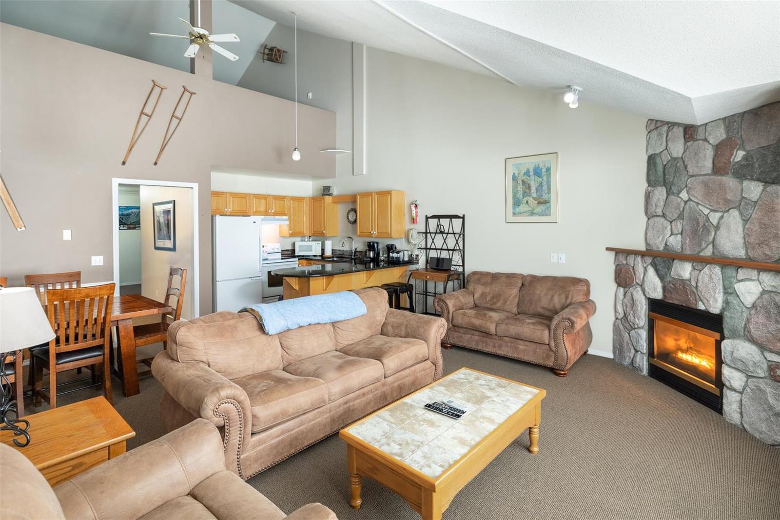 Fully furnished, Ski-in Ski-out centrally located property with stunning mountain views, an excellent floorplan and multiple use options for the next owner! Located on the top floor of a small community of residences, the main floor is flooded with natural light and boasts an open floorplan. The open concept kitchen is an entertainers delight with granite countertops and seamless flow to the dining space and generous sized living room with the fireplace and private Monashee mountain views. Four bedroom options- one of which is plumbed for an additional kitchen offering the option to lock-off a section for personal use while renting out the remaining space to guests. The sprawling, functional floorplan is ideal for large gatherings with an upper level recreation space overlooking the below living area. In suite laundry, steps to a large deck and hot tub. Underground parking and a storage locker included. Big White is continuing to become a popular, vibrant destination with a prized ski-resort and mountain biking park. With short term rentals permitted- this is a fantastic buy! (id:43014)