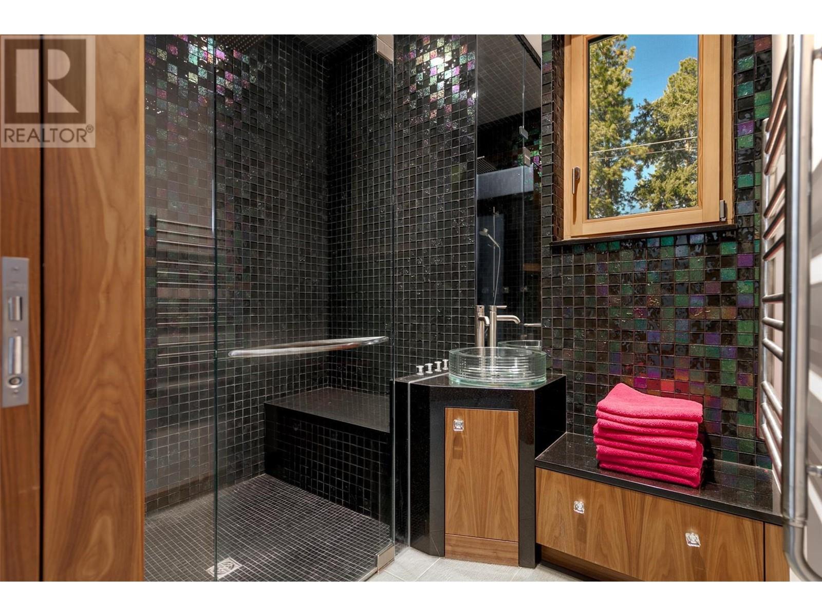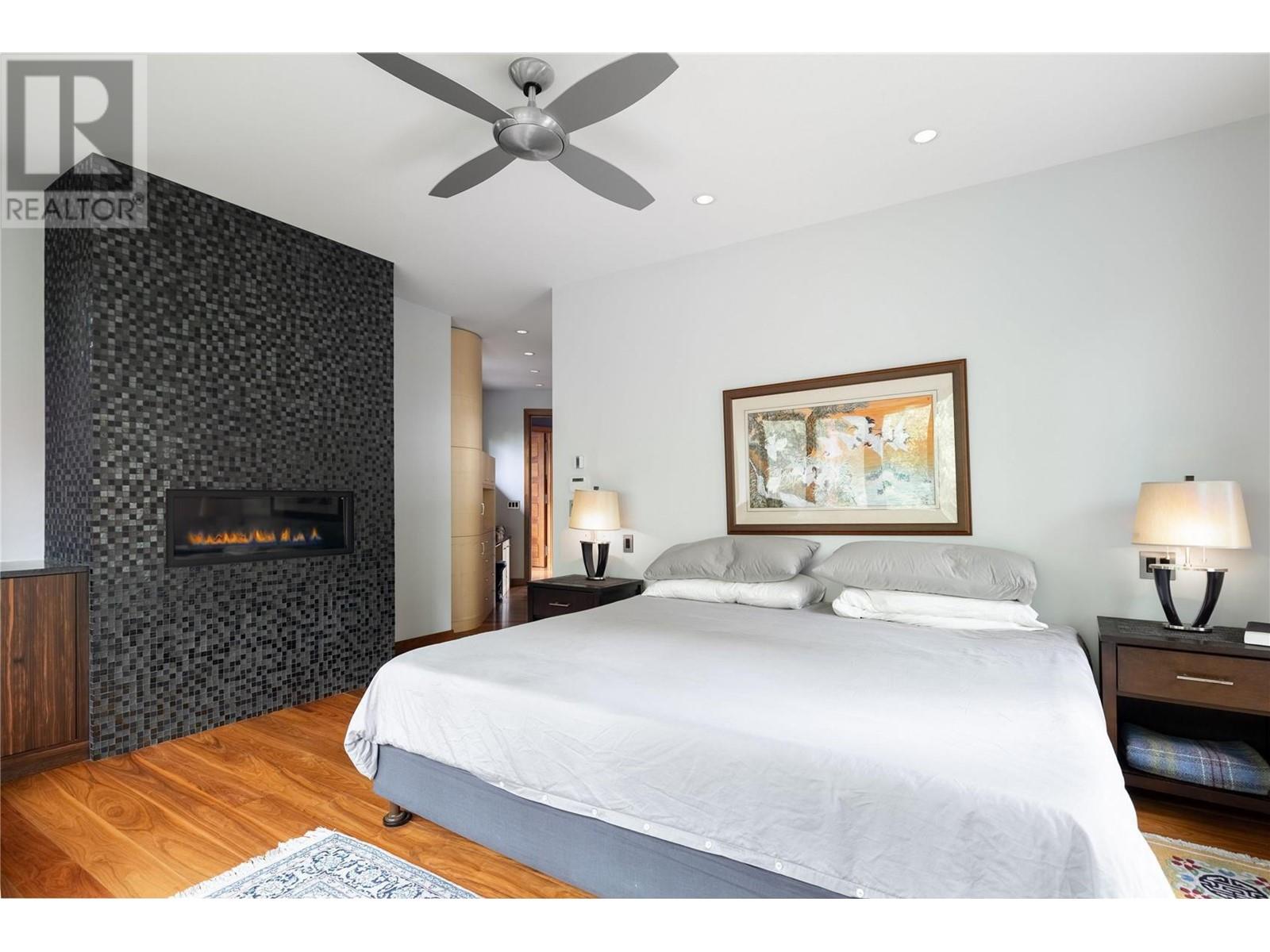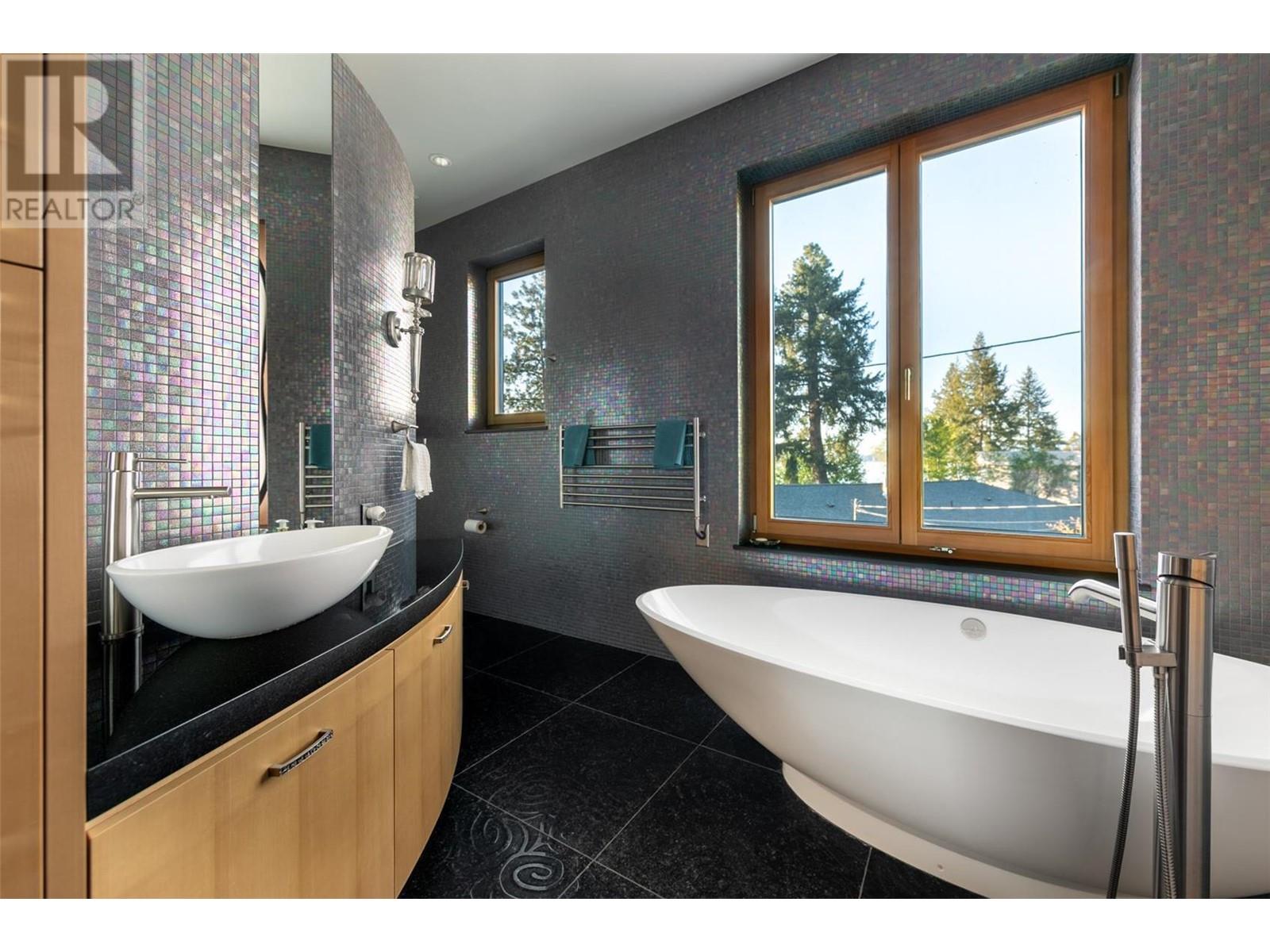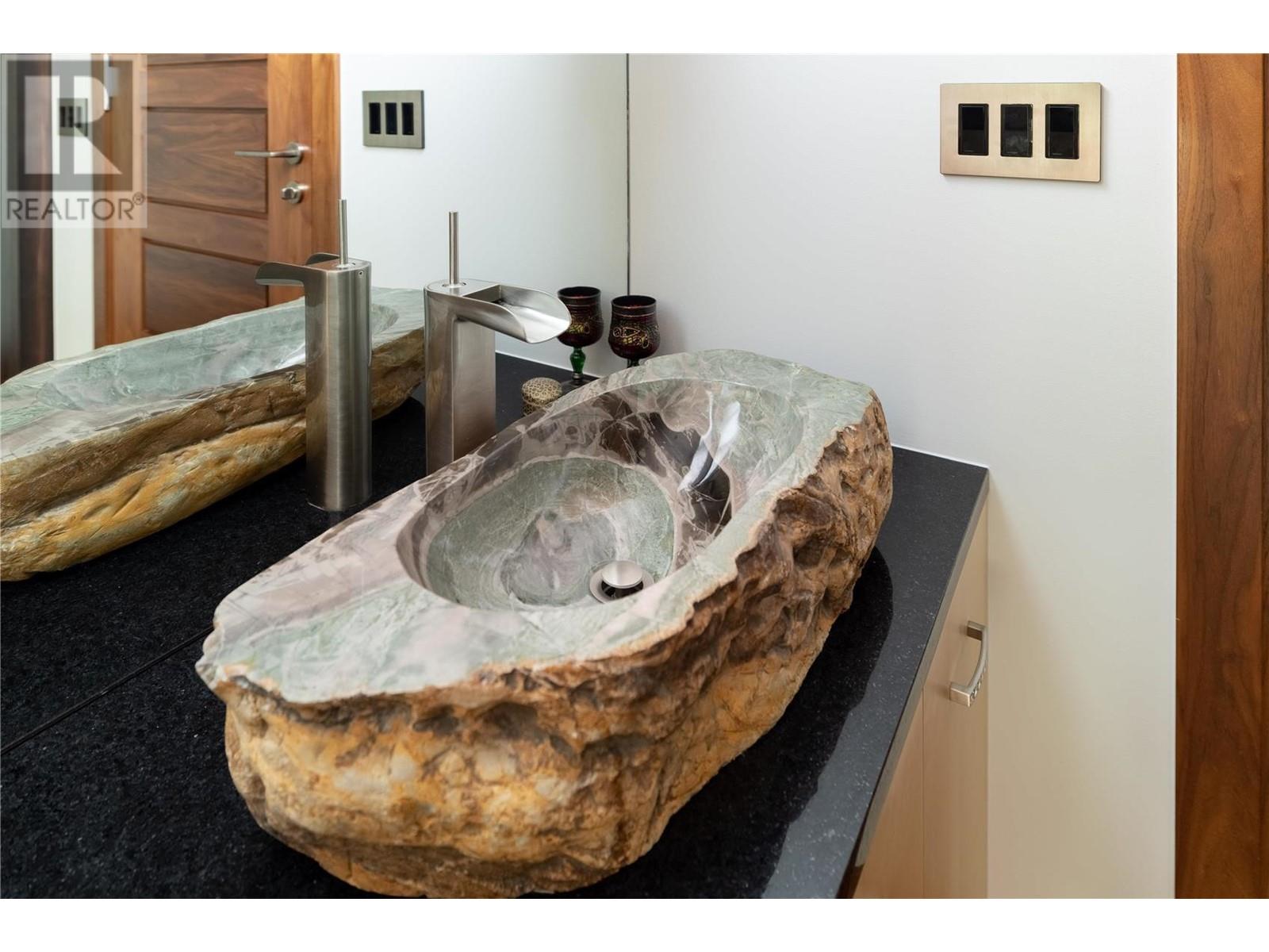 Tranquil Waterfront and Creekside Retreat. This gorgeous custom home is situated on a private 1.22 acre property along the shores of Okanagan Lake and offers 185 feet of water frontage. Lebanon Creek borders the property to the south. Designed by Architect Everest Lap and interior design by Ines Hanl this home is an energy efficient oasis ""connecting back to the earth."" Meticulous attention to detail and design is found throughout the over 4,600 sq ft residence with every room taking full advantage of the lake and forest views, bringing the outdoors in. Exterior has been finished with Kettle Valley granite and incorporates seamlessly into the surroundings. Natural materials span the home with custom rock and tile work, rich wood cabinetry, and beautiful walnut floors. Upon entry you'll notice the soaring 29 ft. ceilings in the kitchen creating a grand space for hosting and entertaining. The high-end kitchen features a curved island, custom Sycamore and Walnut veneer wood cabinets with professional appliances that will delight any chef. Living room was designed to hold a grand piano with a panel of 5 windows that accordion to the patio to allow for an unparalleled indoor to outdoor living experience. Backyard offers a swim spa and hot tub that are both privately nestled into the landscape. Well-designed and constructed wharf system at the beautiful expansive shoreline. For those seeking a tranquil retreat with seamless access to the waterfront this is the ideal property! (id:43014)