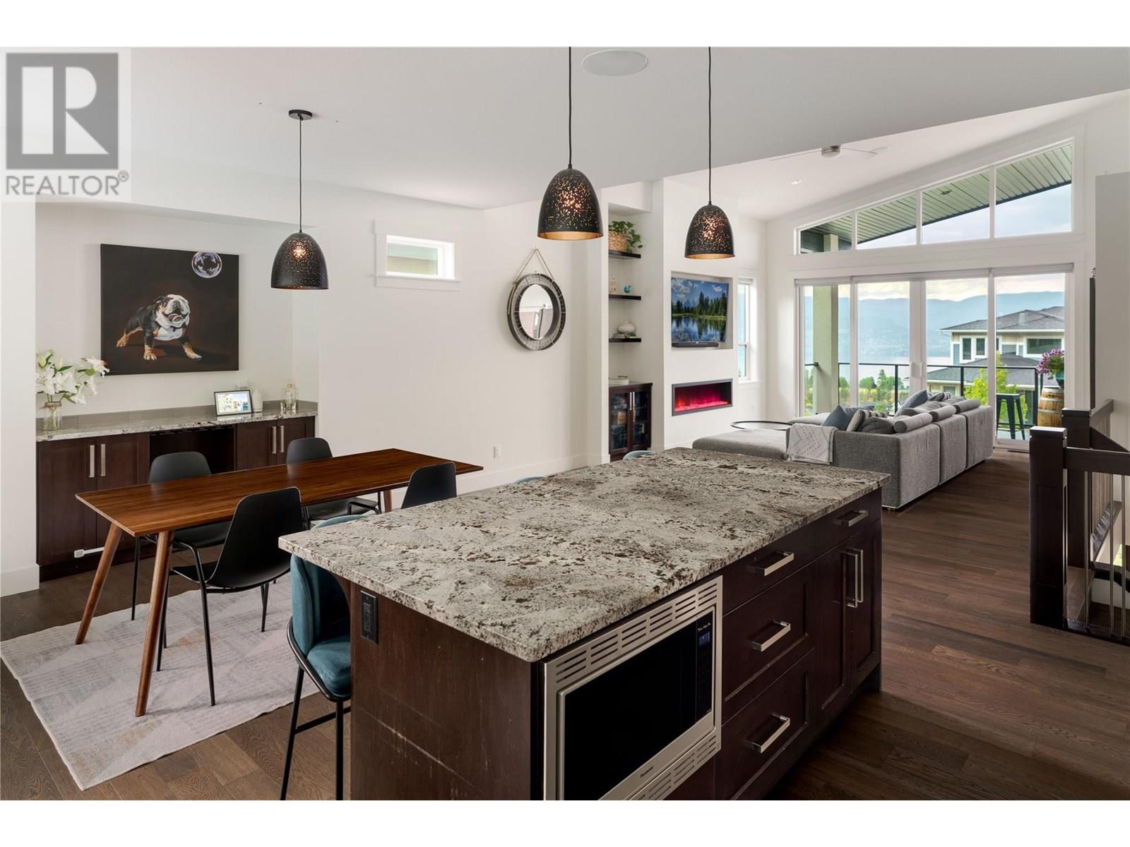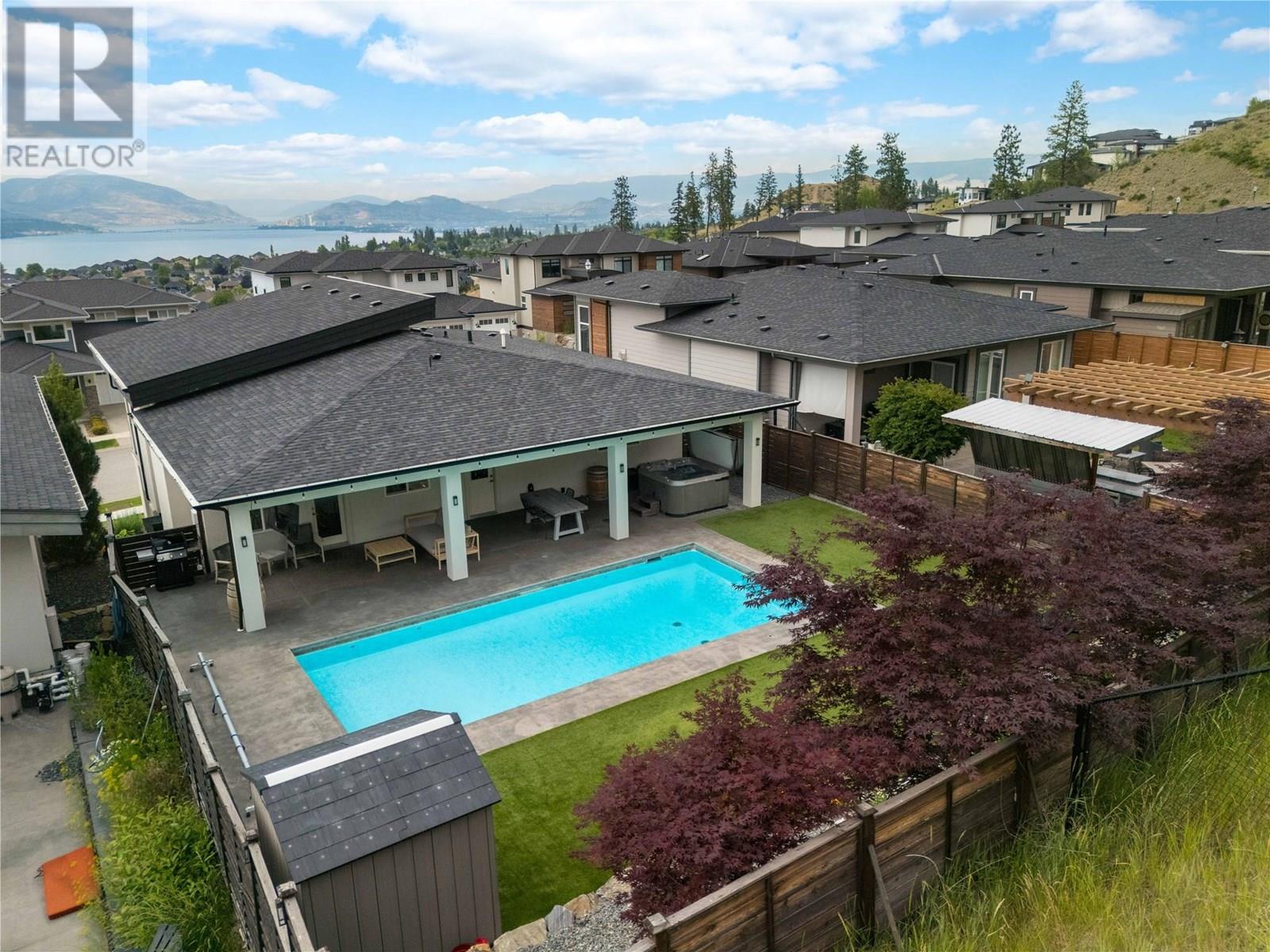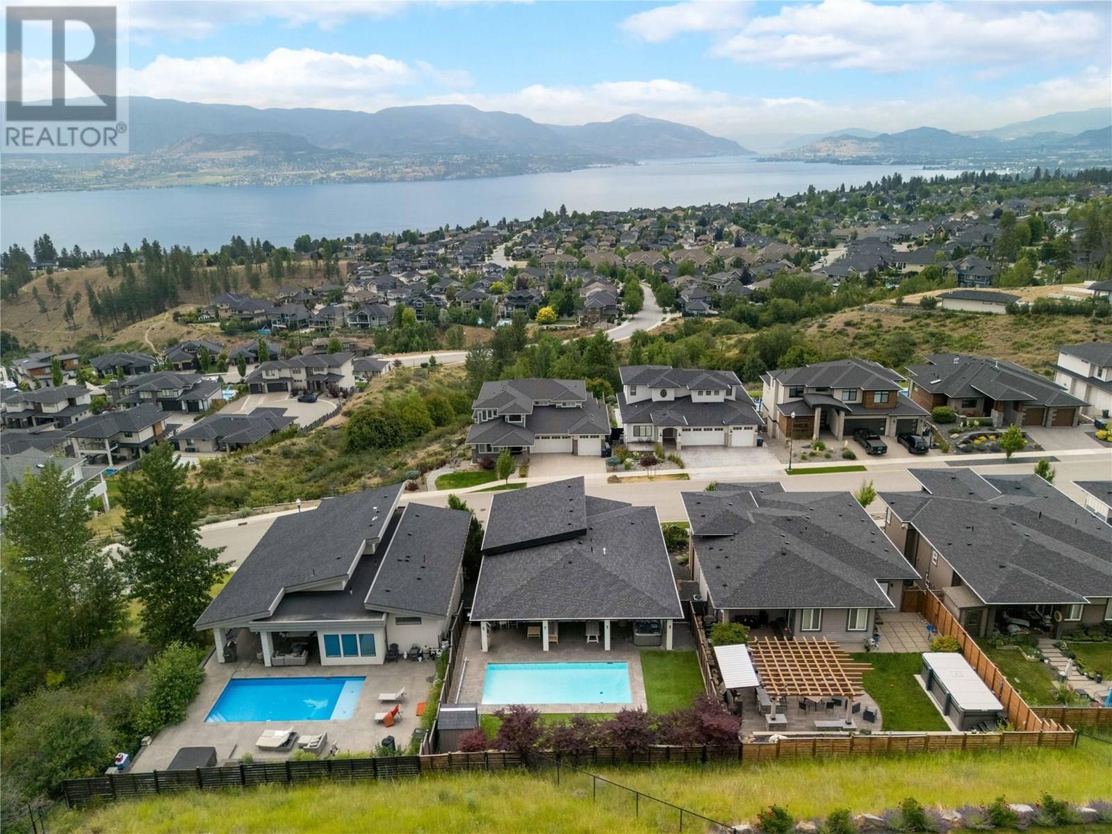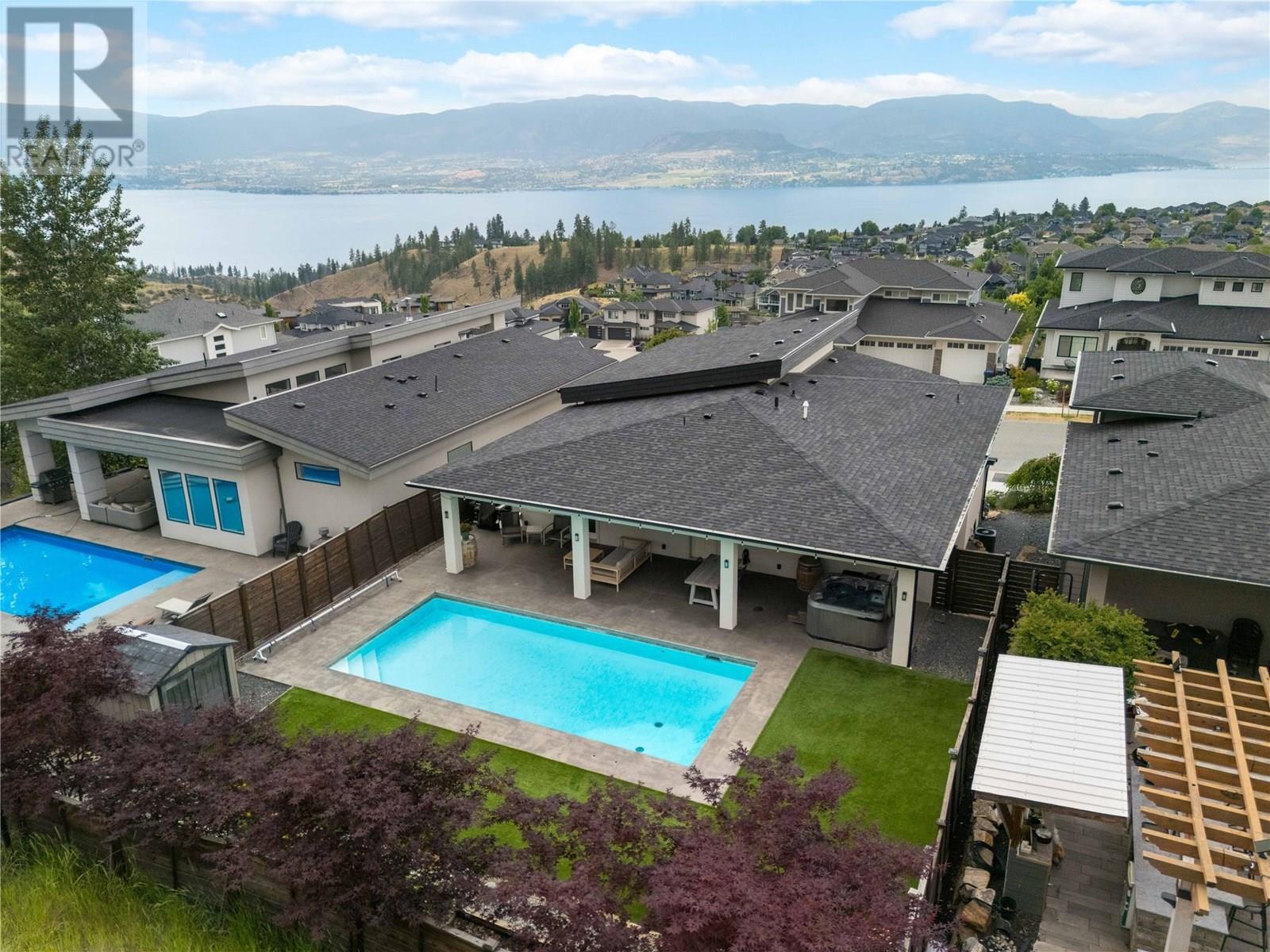 Welcome to this stunning family home in Kettle Valley—offering breathtaking lake views, a sparkling saltwater pool, a fully self-contained in-law suite & an enviable location minutes from Okanagan Lake. Expertly designed to blend refined elegance with everyday comfort, this expansive home showcases open-concept living spaces connecting to a spacious front deck with sweeping views. The chef-inspired kitchen is a true showpiece with a granite island, gas range, full pantry & professional oversized fridge—perfect for gatherings & daily living. The generous dining area flows seamlessly to your private backyard oasis with a resort-style saltwater pool, hot tub, synthetic lawn, fenced yard, shed & space for a veggie garden. Upstairs, three bedrooms include the luxurious primary suite with a spa-like ensuite (heated floors), walk-in closet & peaceful lake views. A versatile den offers the perfect home office, playroom or creative retreat. The lower level features another bedroom & full bath, plus a beautifully appointed one-bedroom in-law suite with private entrance, bright living space & laundry—ideal for guests or extended family. Additional highlights include spacious closets, an oversized double garage & a convenient laundry room with backyard access. Located in a prestigious, family-friendly neighbourhood near top schools, scenic parks, shopping, wineries & just minutes to the waterfront—this exceptional property embodies the ultimate Okanagan lifestyle. (id:43014)