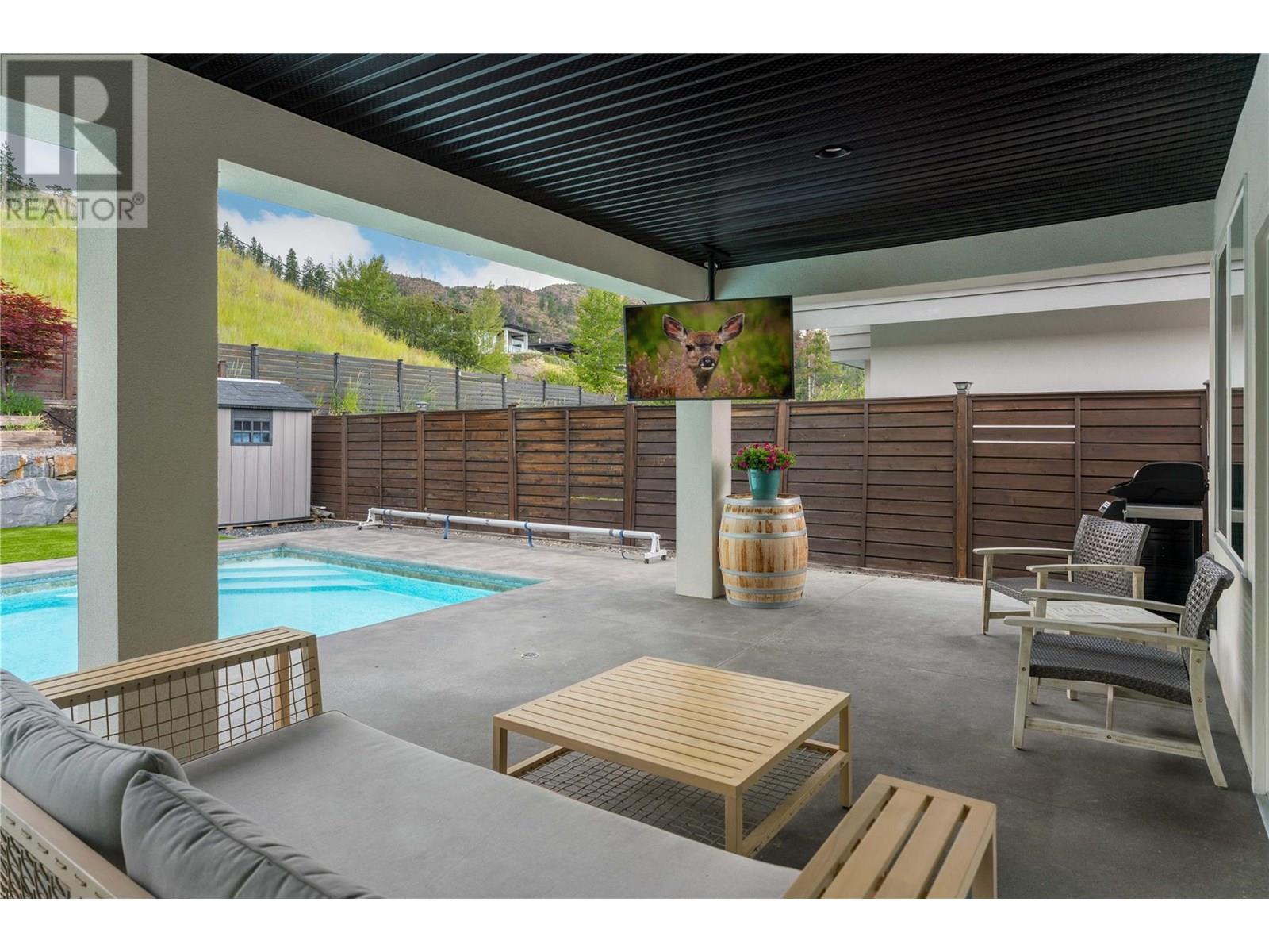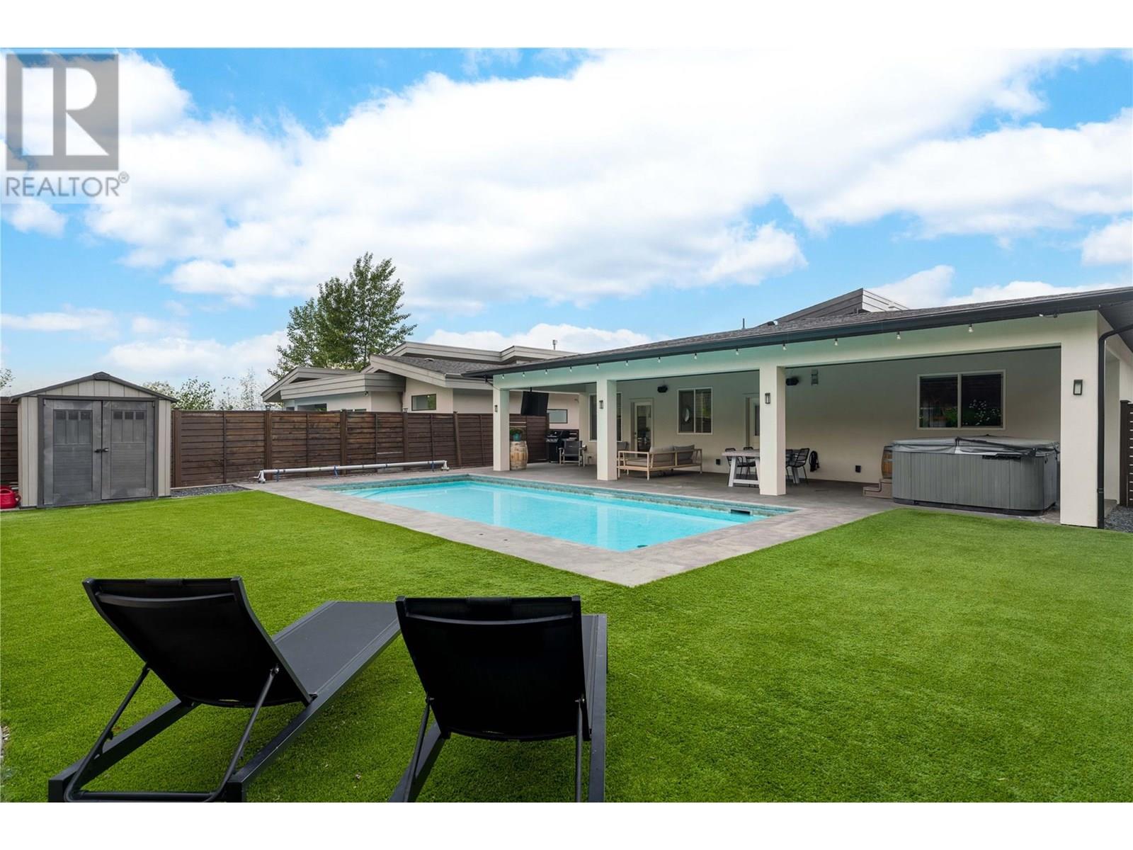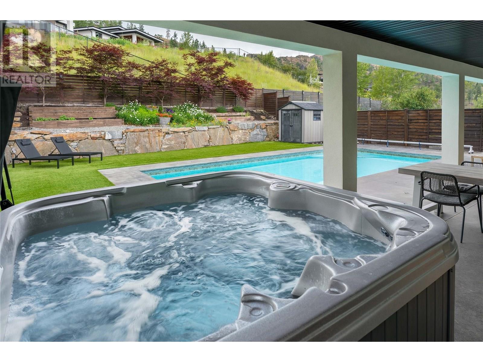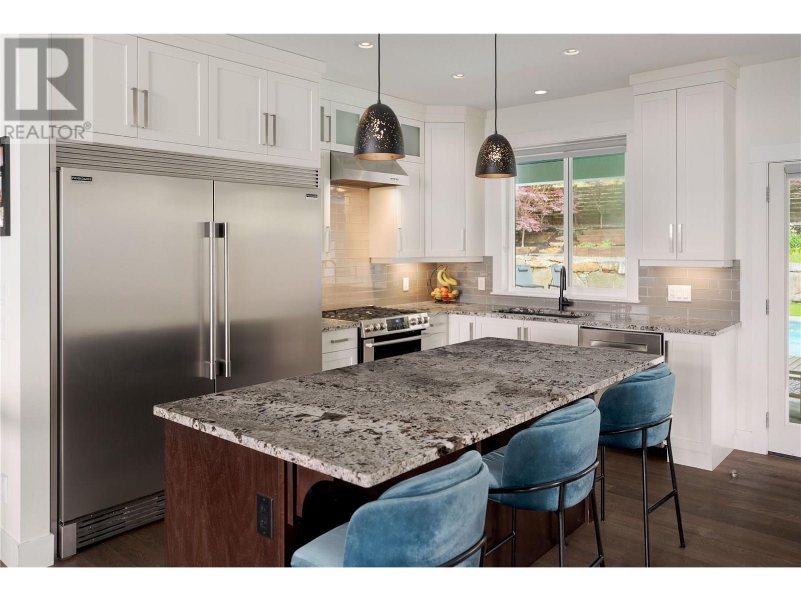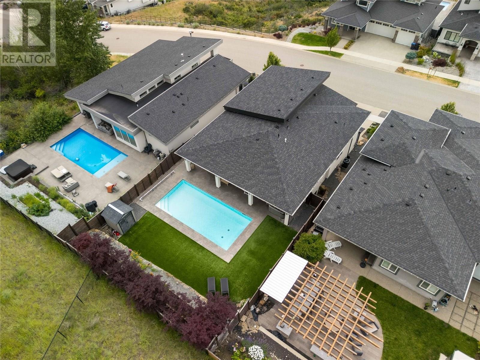 Welcome to this stunning family home in Kettle Valley—offering breathtaking lake views, a sparkling saltwater pool, a fully self-contained in-law suite & an enviable location minutes from Okanagan Lake. Expertly designed to blend refined elegance with everyday comfort, this expansive home showcases open-concept living spaces connecting to a spacious front deck with sweeping views. The chef-inspired kitchen is a true showpiece with a granite island, gas range, full pantry & professional oversized fridge—perfect for gatherings & daily living. The generous dining area flows seamlessly to your private backyard oasis with a resort-style saltwater pool, hot tub, synthetic lawn, fenced yard, shed & space for a veggie garden. Upstairs, three bedrooms include the luxurious primary suite with a spa-like ensuite (heated floors), walk-in closet & peaceful lake views. A versatile den offers the perfect home office, playroom or creative retreat. The lower level features another bedroom & full bath, plus a beautifully appointed one-bedroom in-law suite with private entrance, bright living space & laundry—ideal for guests or extended family. Additional highlights include spacious closets, an oversized double garage & a convenient laundry room with backyard access. Located in a prestigious, family-friendly neighbourhood near top schools, scenic parks, shopping, wineries & just minutes to the waterfront—this exceptional property embodies the ultimate Okanagan lifestyle. (id:43014)