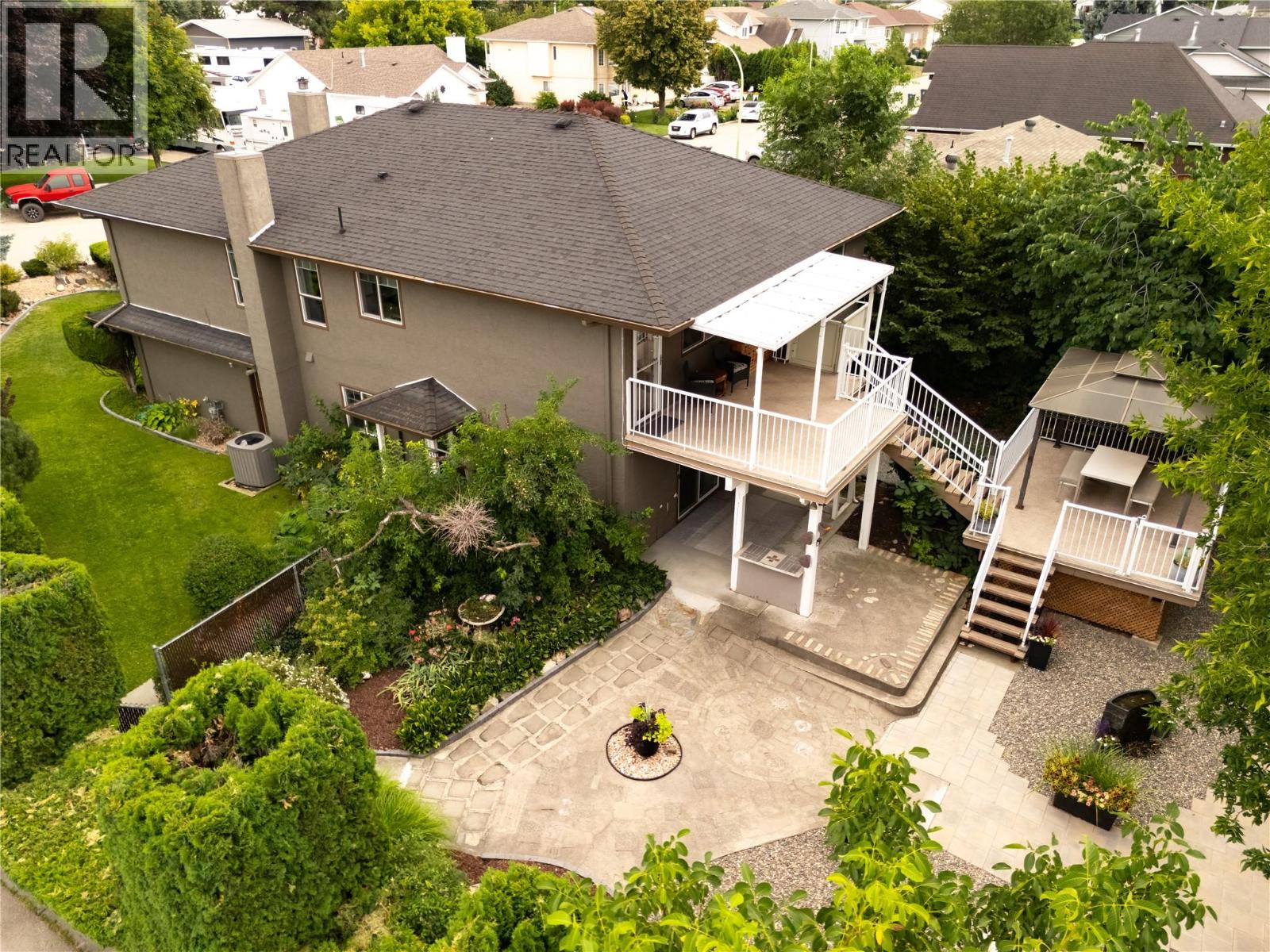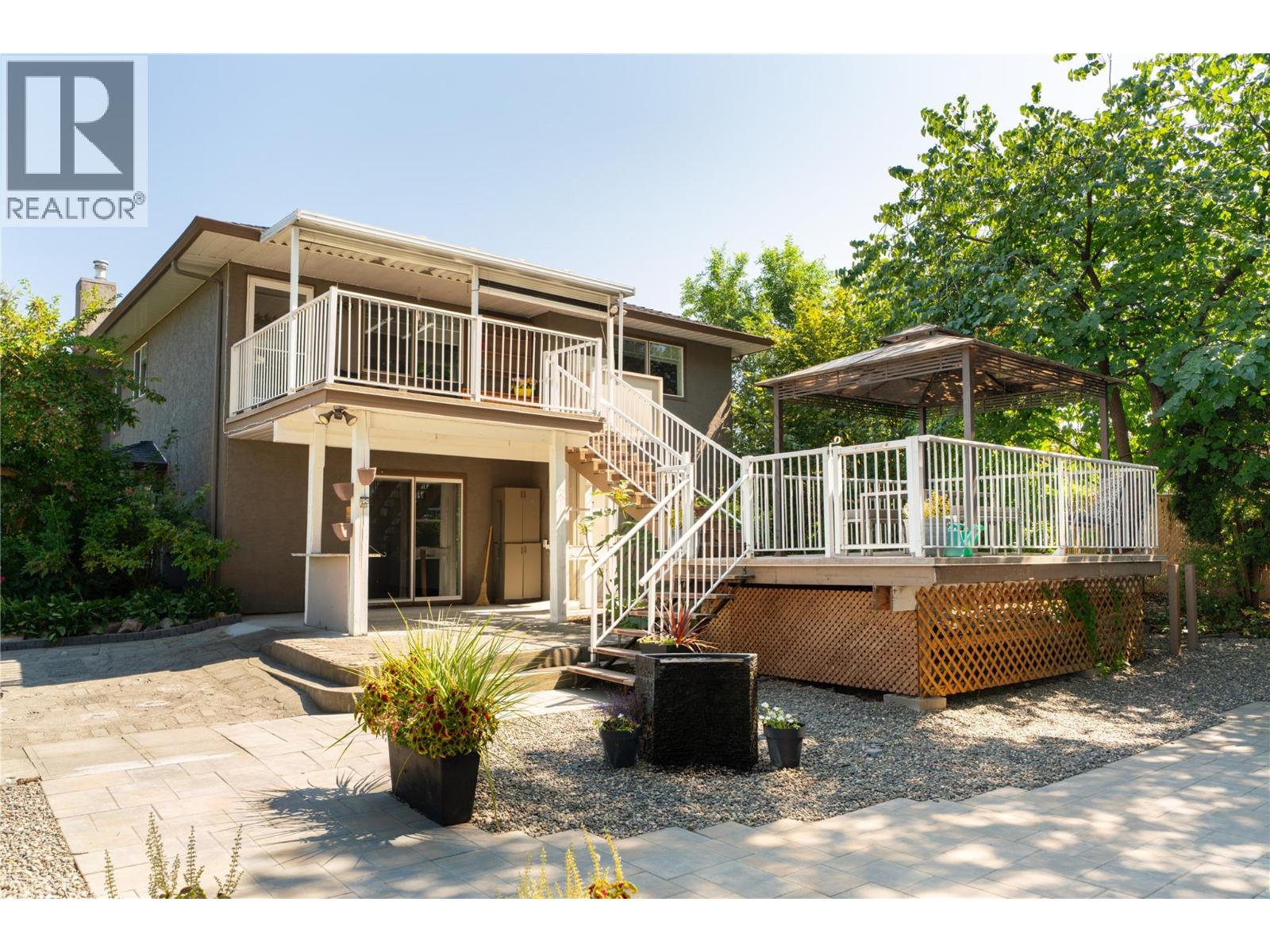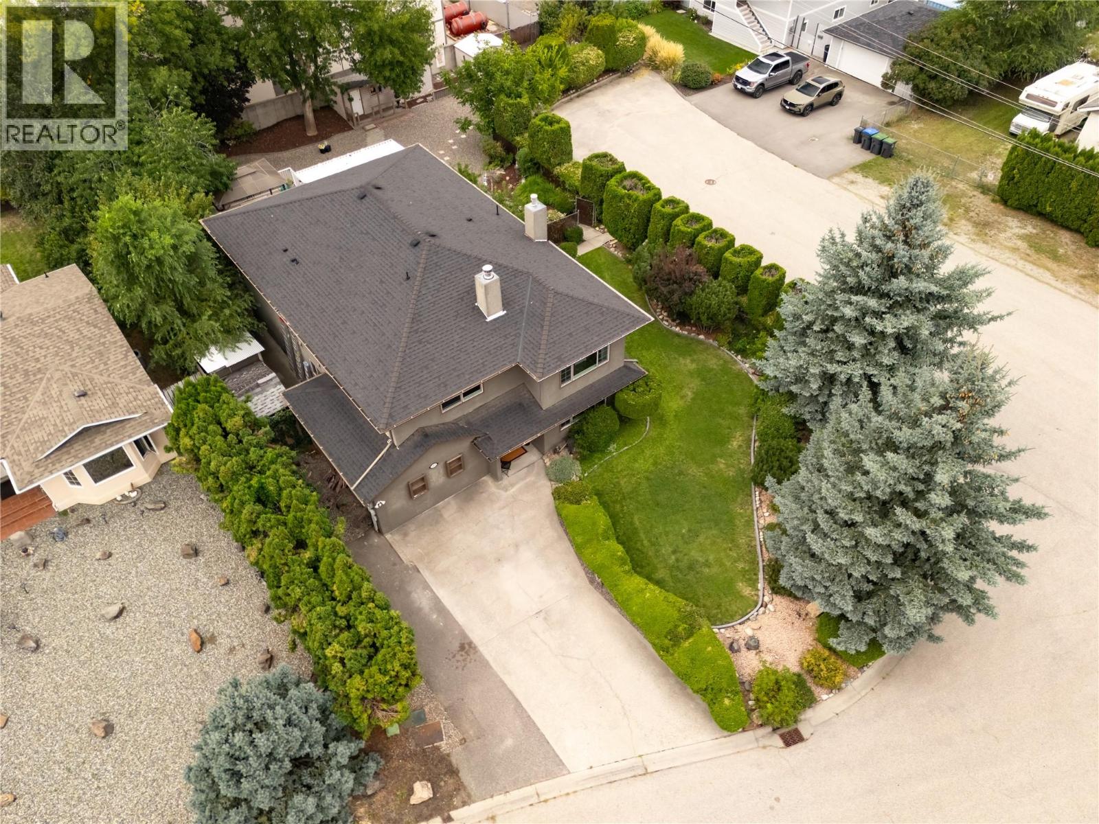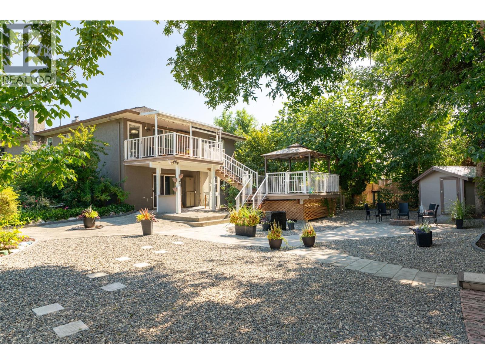 Welcome to this beautifully updated family home on a spacious corner lot, tucked away on a quiet cul-de-sac near parks, schools, shopping, UBCO & the airport. With 6 bedrooms, including primary suites on both levels, this home offers a versatile layout ideal for multi-generational living. The upper level has been completely renovated, featuring a bright eat-in kitchen with white cabinetry, quartz countertops, stainless steel appliances & a large island perfect for gathering. The living room is anchored by a cozy fireplace, while the adjacent dining area opens to a large covered deck with direct wheelchair elevator access. The upper floor is thoughtfully designed to be wheelchair friendly throughout. The lower level includes a fully self contained 2-bedroom in-law suite. The current lower-level primary could be converted back to a garage or carport if desired. Outdoors, the fully fenced & irrigated yard provides plenty of space for kids & pets, with multiple seating areas, a gazebo-covered deck, beautiful water feature, firepit, & six storage sheds for maximum functionality. Set in an incredibly quiet & family-friendly neighbourhood, this property blends thoughtful updates, accessibility & outdoor living—an exceptional opportunity for today’s buyer. (id:43014)