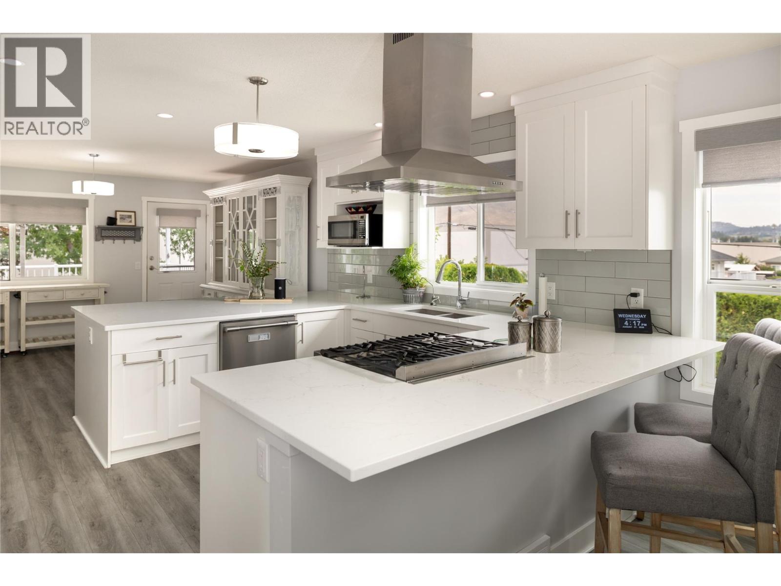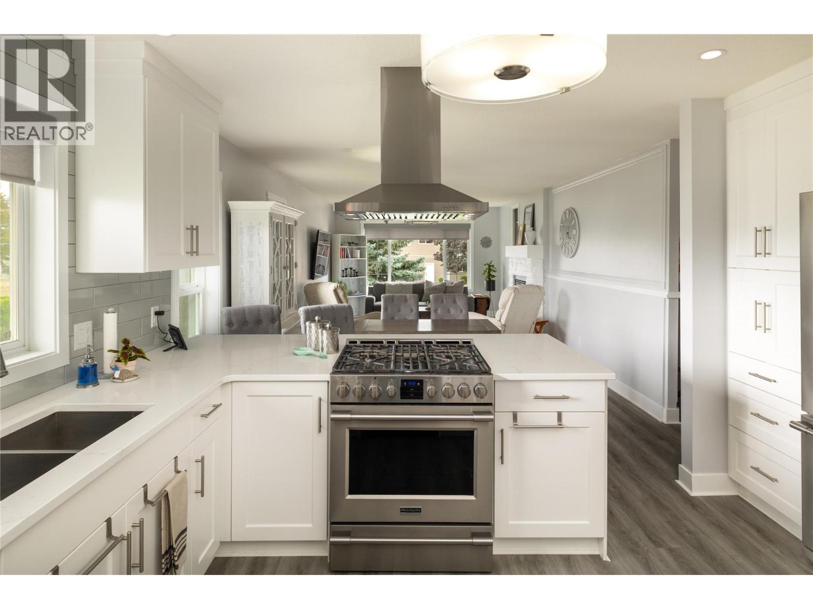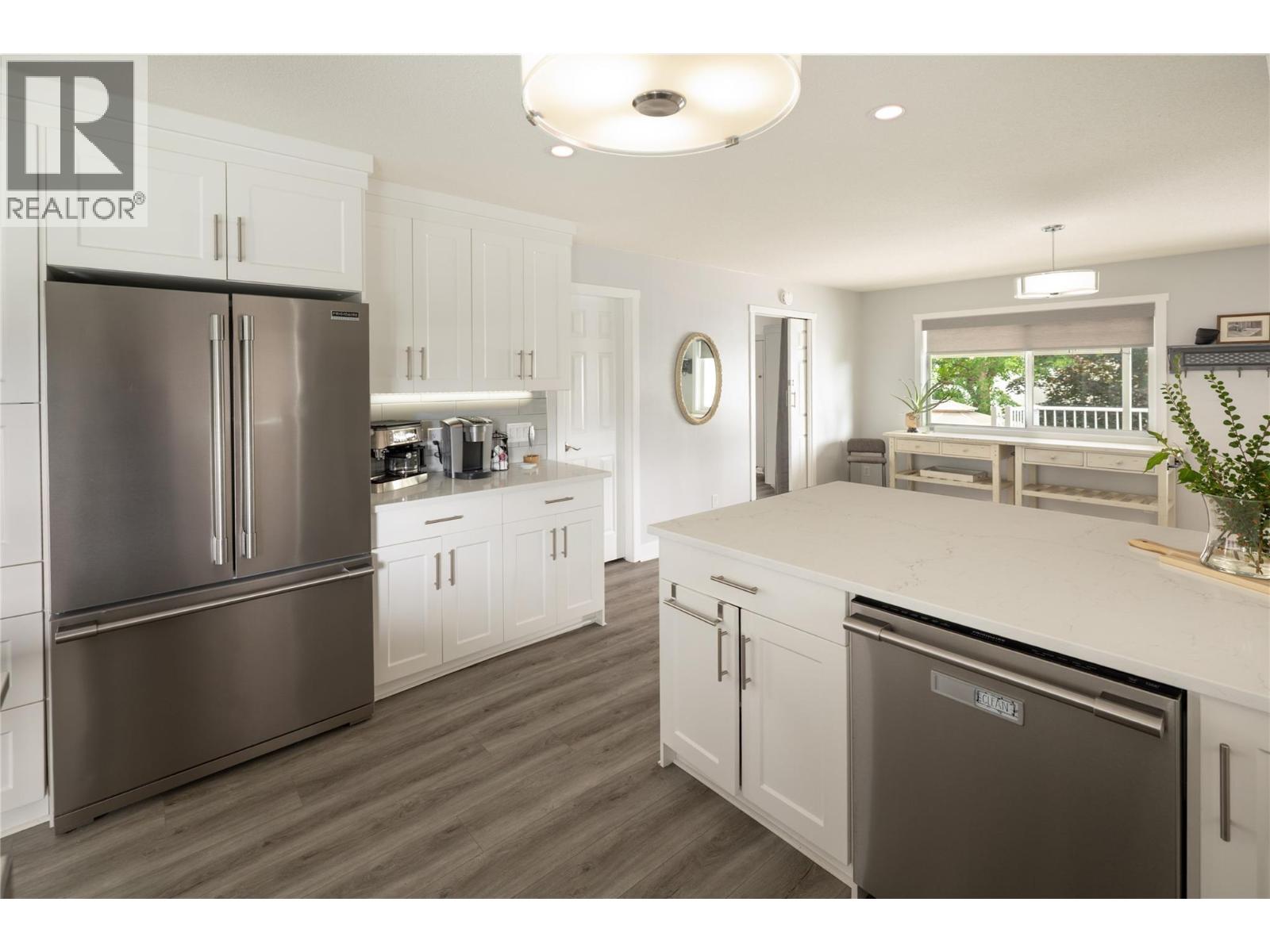 Welcome to this beautifully updated family home on a spacious corner lot, tucked away on a quiet cul-de-sac near parks, schools, shopping, UBCO & the airport. With 6 bedrooms, including primary suites on both levels, this home offers a versatile layout ideal for multi-generational living. The upper level has been completely renovated, featuring a bright eat-in kitchen with white cabinetry, quartz countertops, stainless steel appliances & a large island perfect for gathering. The living room is anchored by a cozy fireplace, while the adjacent dining area opens to a large covered deck with direct wheelchair elevator access. The upper floor is thoughtfully designed to be wheelchair friendly throughout. The lower level includes a fully self contained 2-bedroom in-law suite. The current lower-level primary could be converted back to a garage or carport if desired. Outdoors, the fully fenced & irrigated yard provides plenty of space for kids & pets, with multiple seating areas, a gazebo-covered deck, beautiful water feature, firepit, & six storage sheds for maximum functionality. Set in an incredibly quiet & family-friendly neighbourhood, this property blends thoughtful updates, accessibility & outdoor living—an exceptional opportunity for today’s buyer. (id:43014)