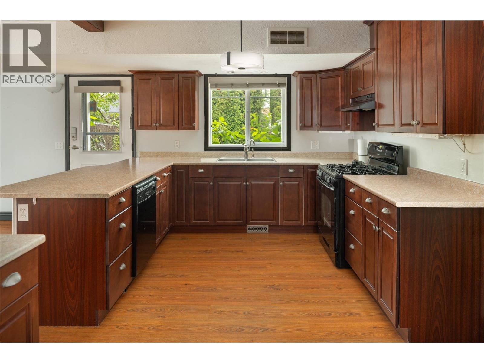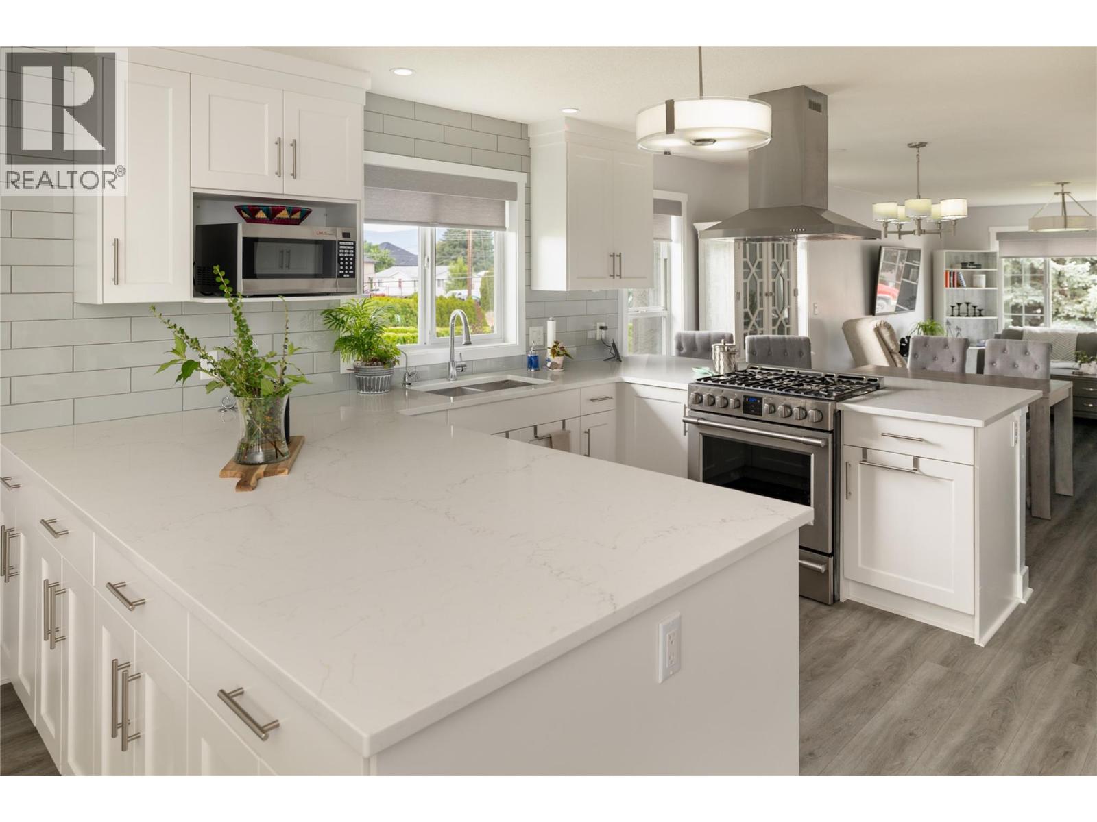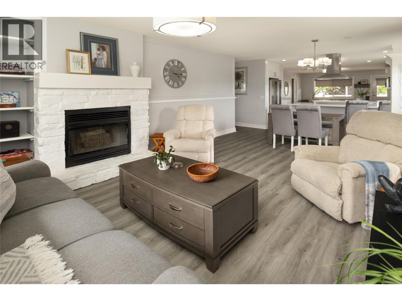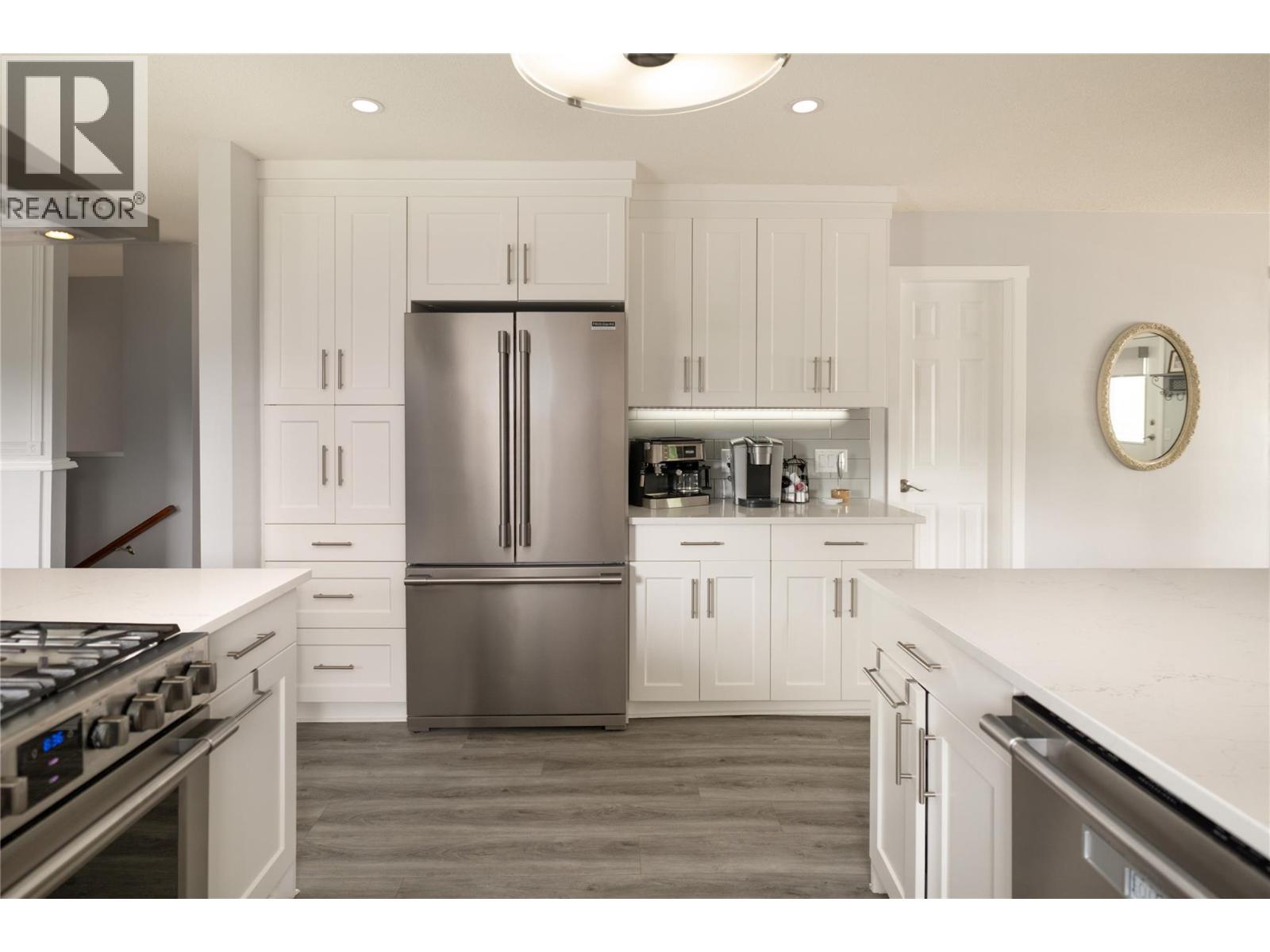 Welcome to this beautifully updated family home on a spacious corner lot, tucked away on a quiet cul-de-sac near parks, schools, shopping, UBCO & the airport. With 6 bedrooms, including primary suites on both levels, this home offers a versatile layout ideal for multi-generational living. The upper level has been completely renovated, featuring a bright eat-in kitchen with white cabinetry, quartz countertops, stainless steel appliances & a large island perfect for gathering. The living room is anchored by a cozy fireplace, while the adjacent dining area opens to a large covered deck with direct wheelchair elevator access. The upper floor is thoughtfully designed to be wheelchair friendly throughout. The lower level includes a fully self contained 2-bedroom in-law suite. The current lower-level primary could be converted back to a garage or carport if desired. Outdoors, the fully fenced & irrigated yard provides plenty of space for kids & pets, with multiple seating areas, a gazebo-covered deck, beautiful water feature, firepit, & six storage sheds for maximum functionality. Set in an incredibly quiet & family-friendly neighbourhood, this property blends thoughtful updates, accessibility & outdoor living—an exceptional opportunity for today’s buyer. (id:43014)