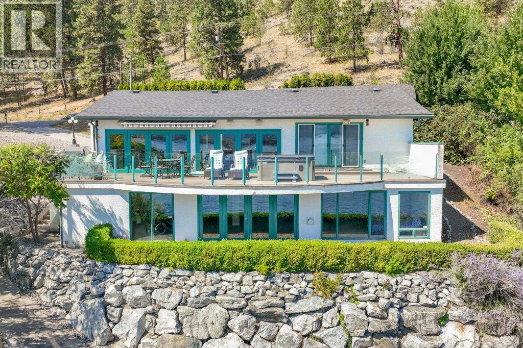 Waterfront luxury homes perched on a cliffside along Westside Road, offering panoramic views of Okanagan Lake and natural surroundings.